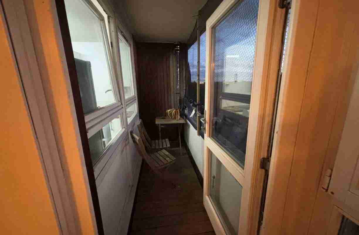 公寓分布于第四、第五及第六层。第四层设有宽敞的客厅与厨房。客厅窗户横跨整面墙体,采光极佳,并可直接通往阳台,空间充足且视野开阔。厨房设计合理,配备嵌入式电器,整体维护良好。