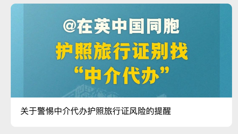 中国驻英大使馆紧急发文提醒!千万别找中介“代办”证件