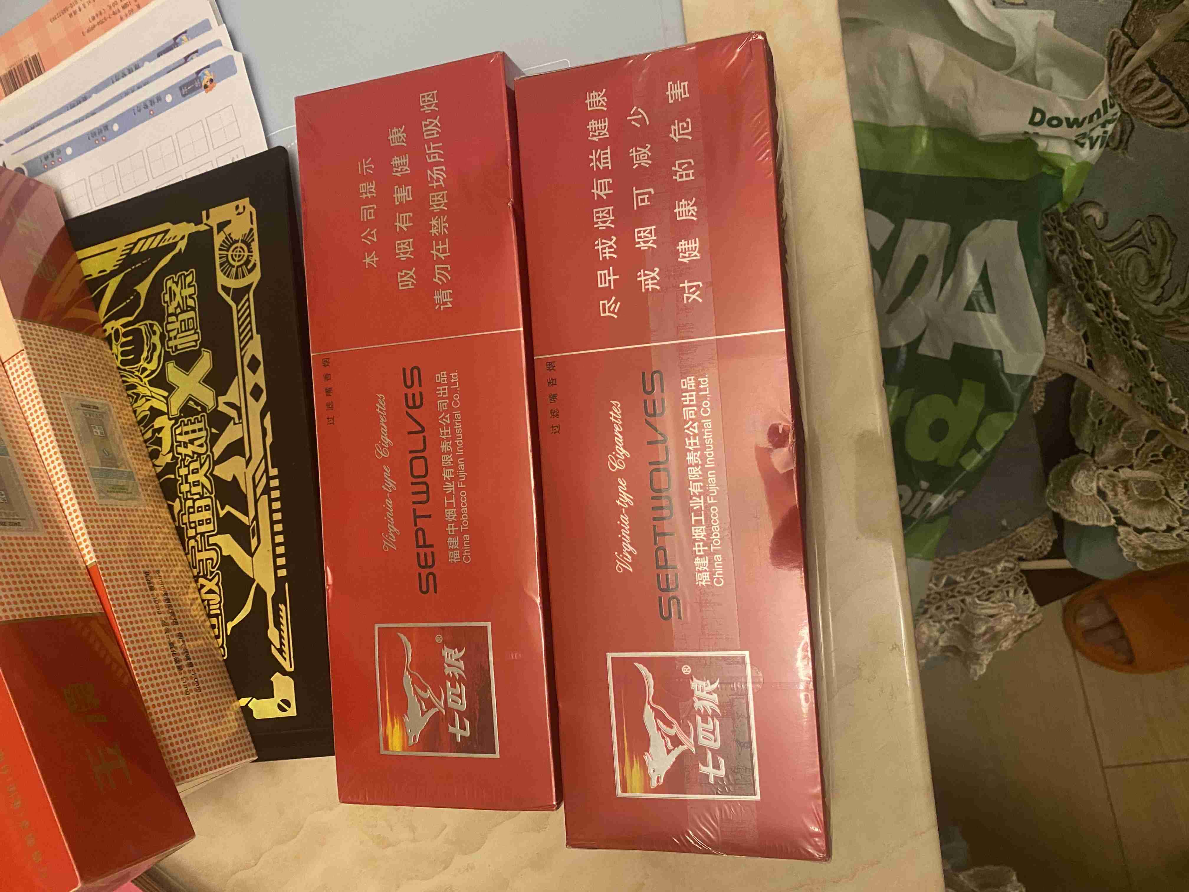 香港机场带回红色万宝路四条, 40镑/条,国内机场带回的烟, 七匹狼一共五条,软装,40镑/条,中华四条,55镑/条,可送货上门。 07821726931