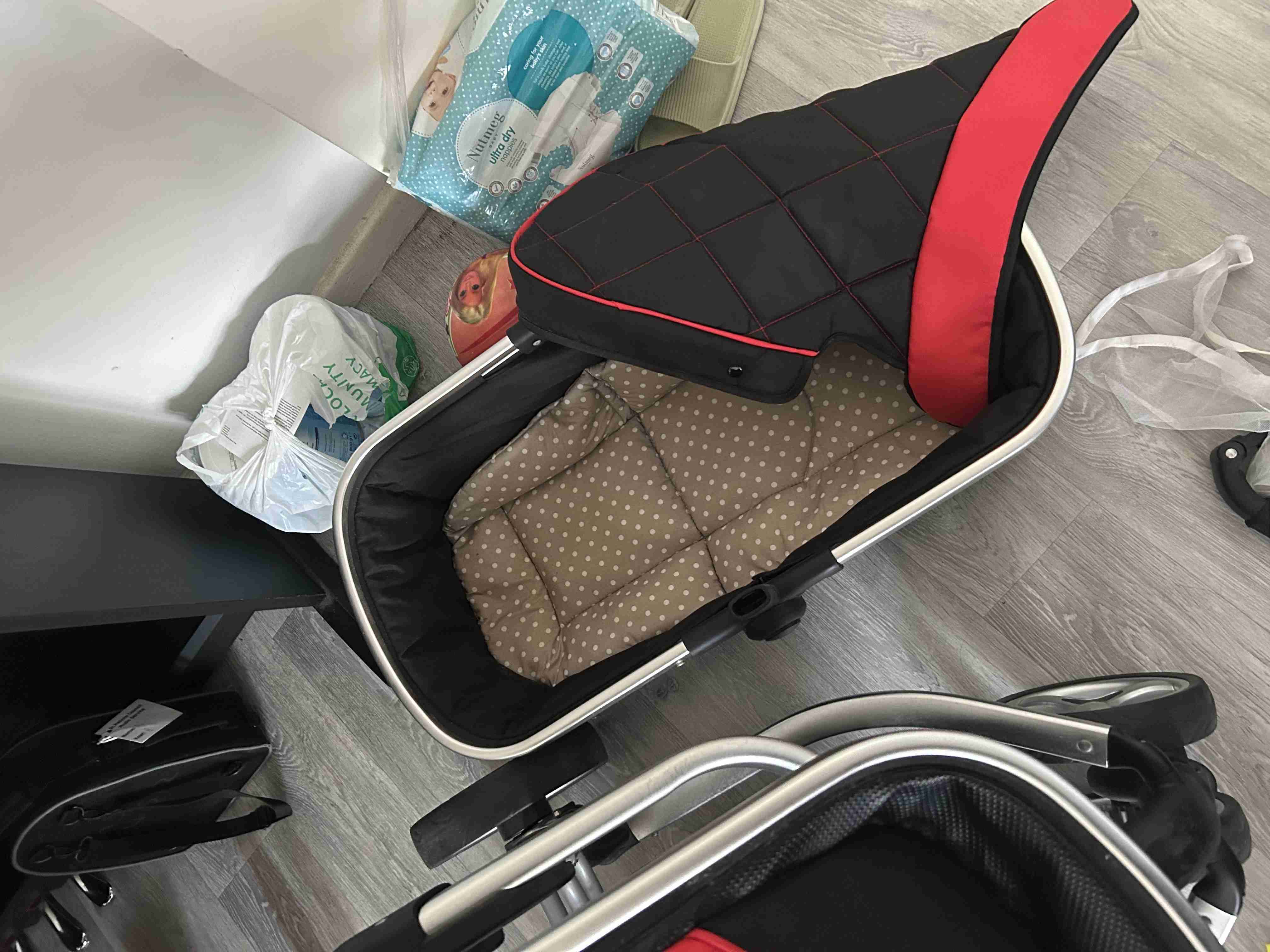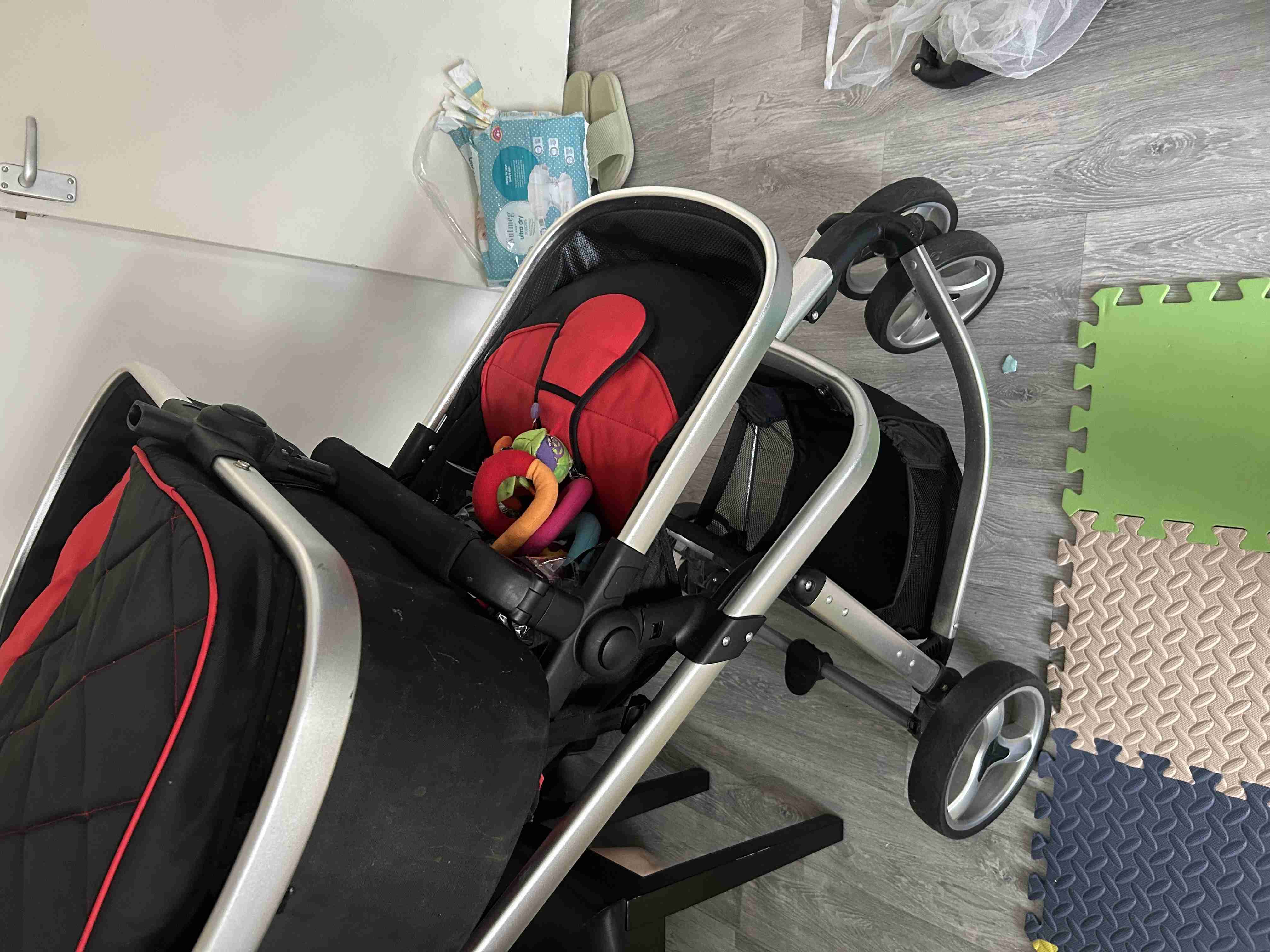 很新的婴儿双用车,用过几次,所有配件都在,想要箱子的也有。075384046666