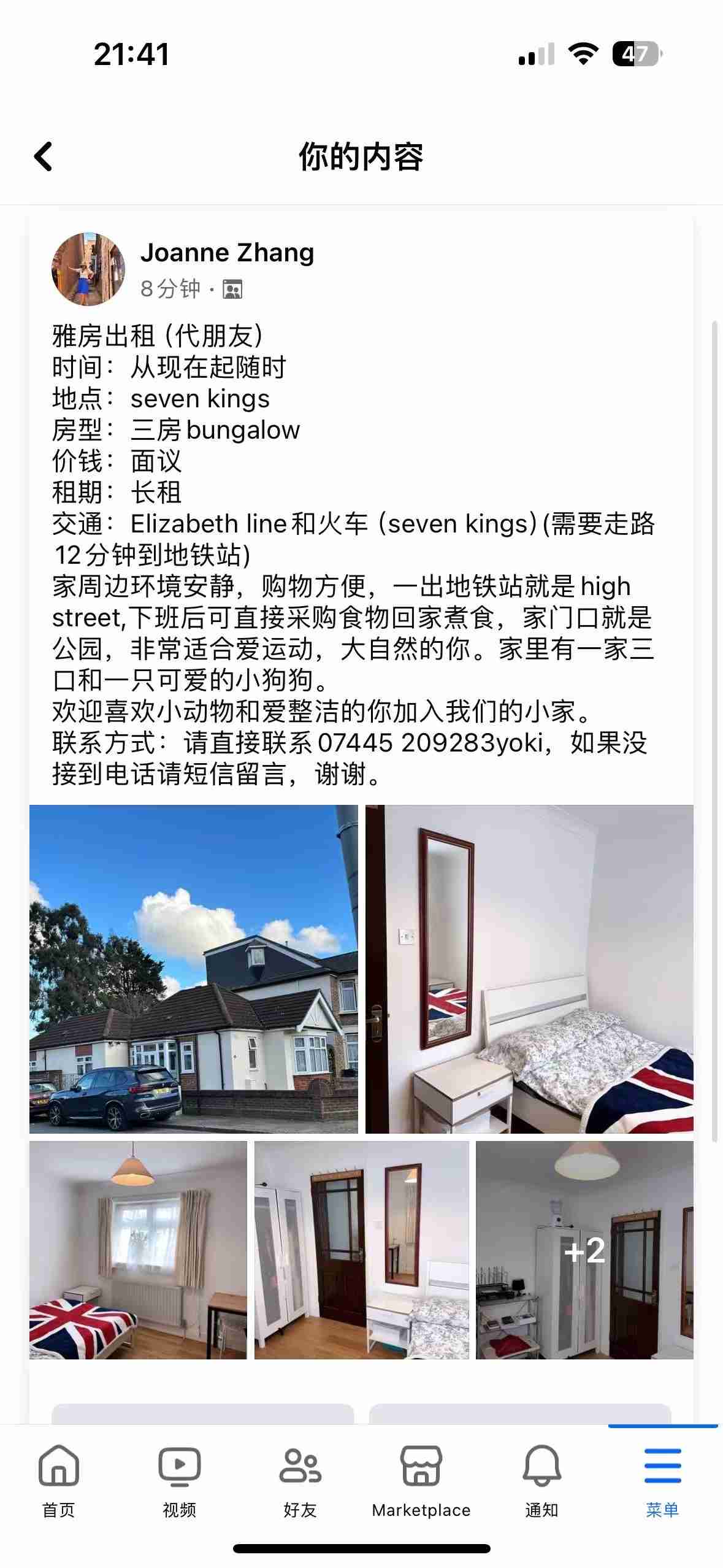 联系方式:请直接联系 07445 209283yoki,如果没接到电话请短信留言,谢谢。
