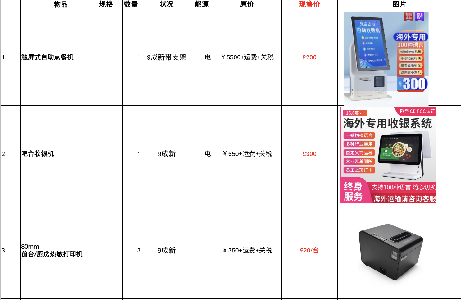 二手/餐馆/办公设备