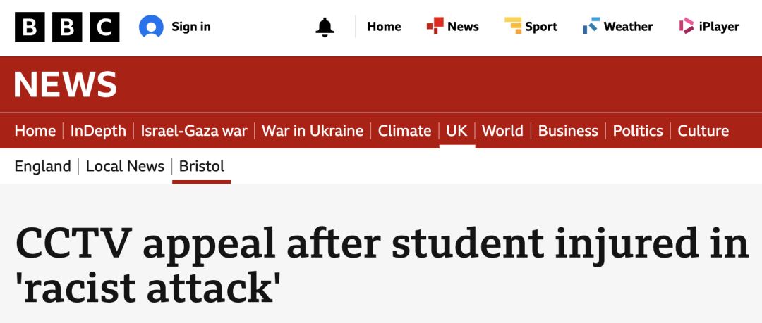 近期,英国布里斯托市中心发生了一起种族歧视袭击事件。一名年仅18岁的中国女留学生遭到陌生女子的攻击,面部受伤入院。