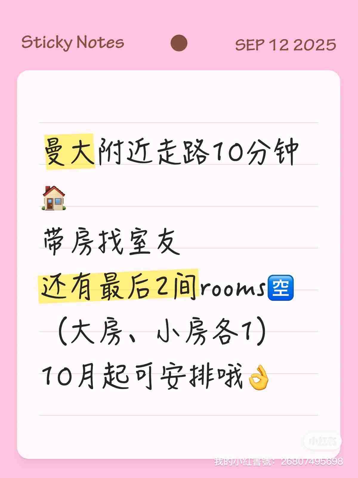 12月起有两间房间空出,大房全景观花园房。小房价格实惠。1大1小开放出租,可接受预定看房,欢迎随时📱/🌍联系,预约看房👌