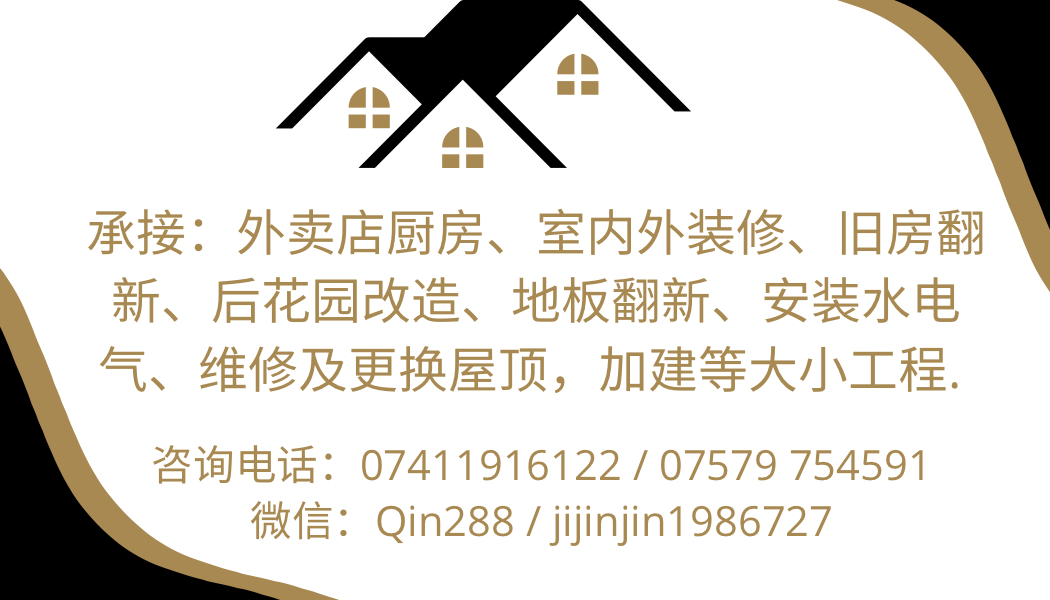 承接:外卖店厨房、室内外装修、旧房翻新、后花园,厕所等改造、地板翻新、安装水电气、维修及更换屋顶,加建等大小工程.