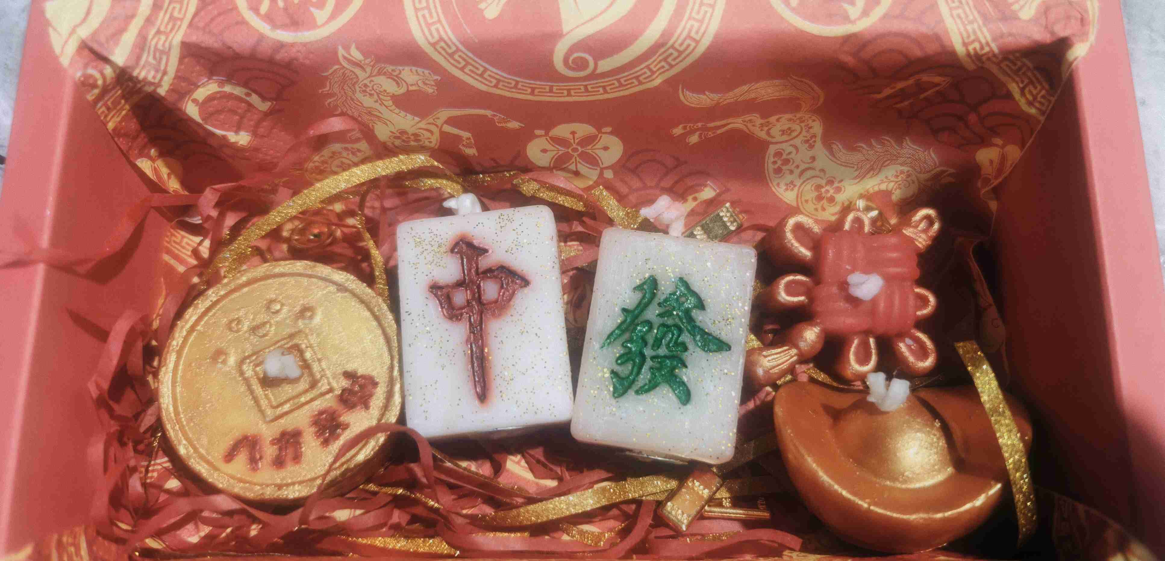 農曆新年招財蠟燭禮盒組 - 麻將與財富符號