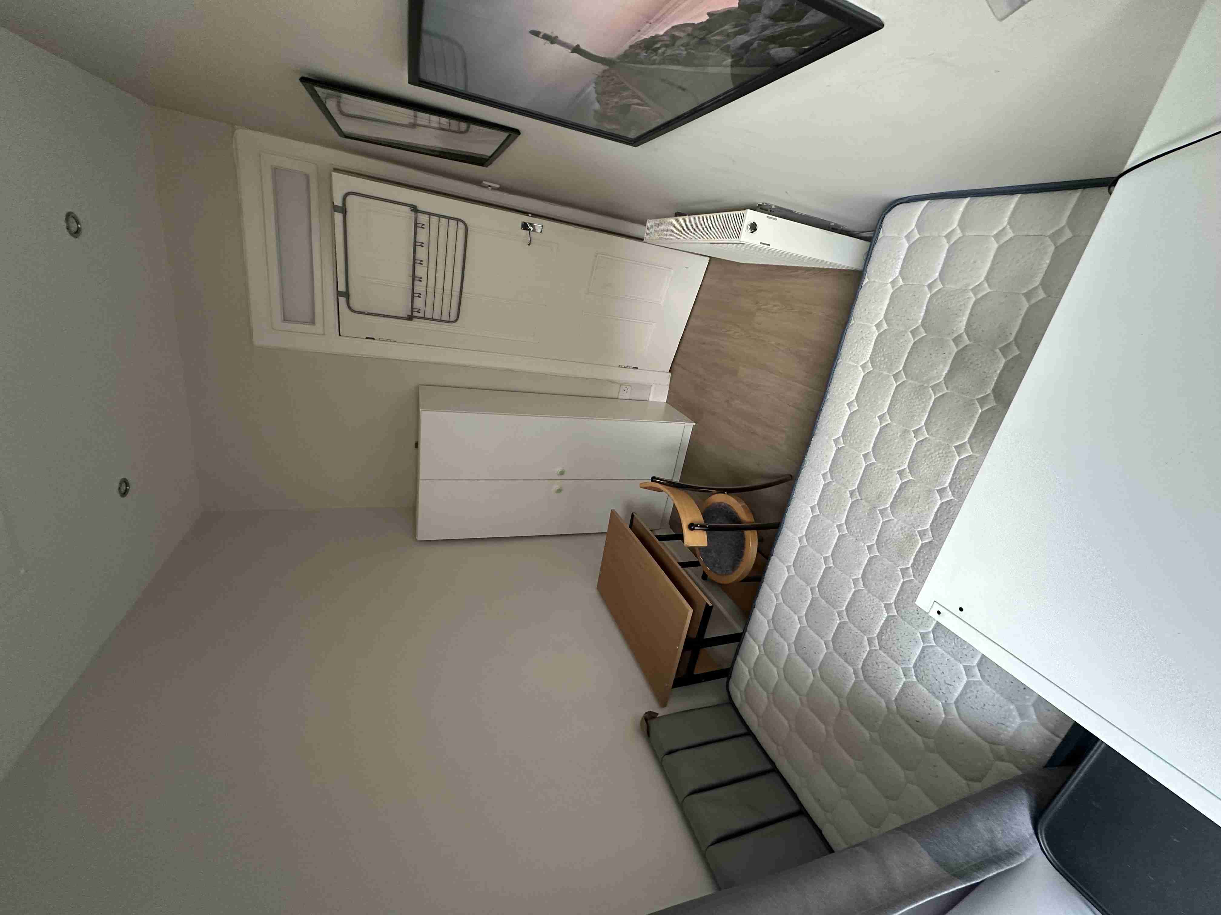 房間配有單人床、衣櫃和書桌,明亮舒適,適合學習或工作。