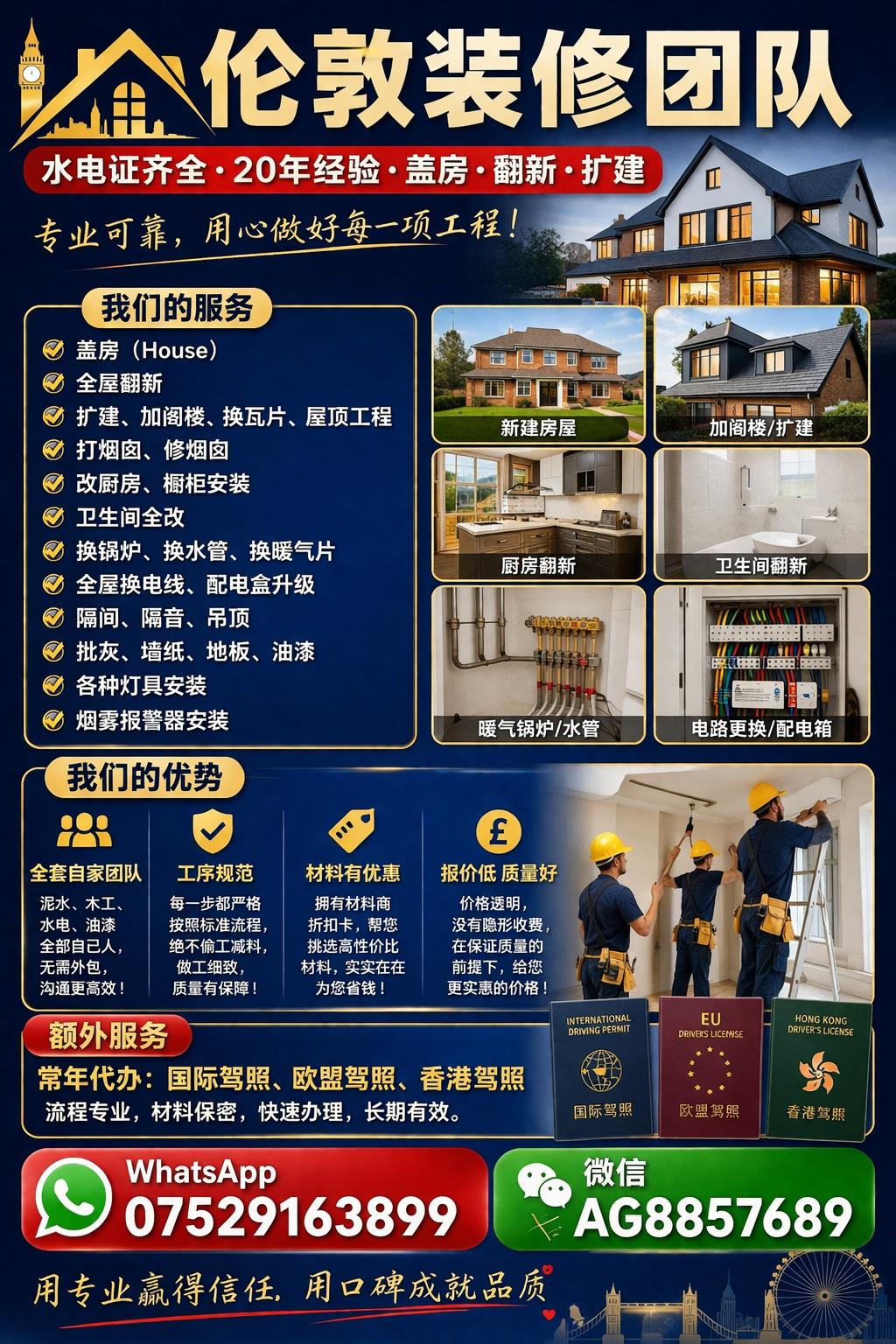 英国伦敦室内外装修,承接大小工程