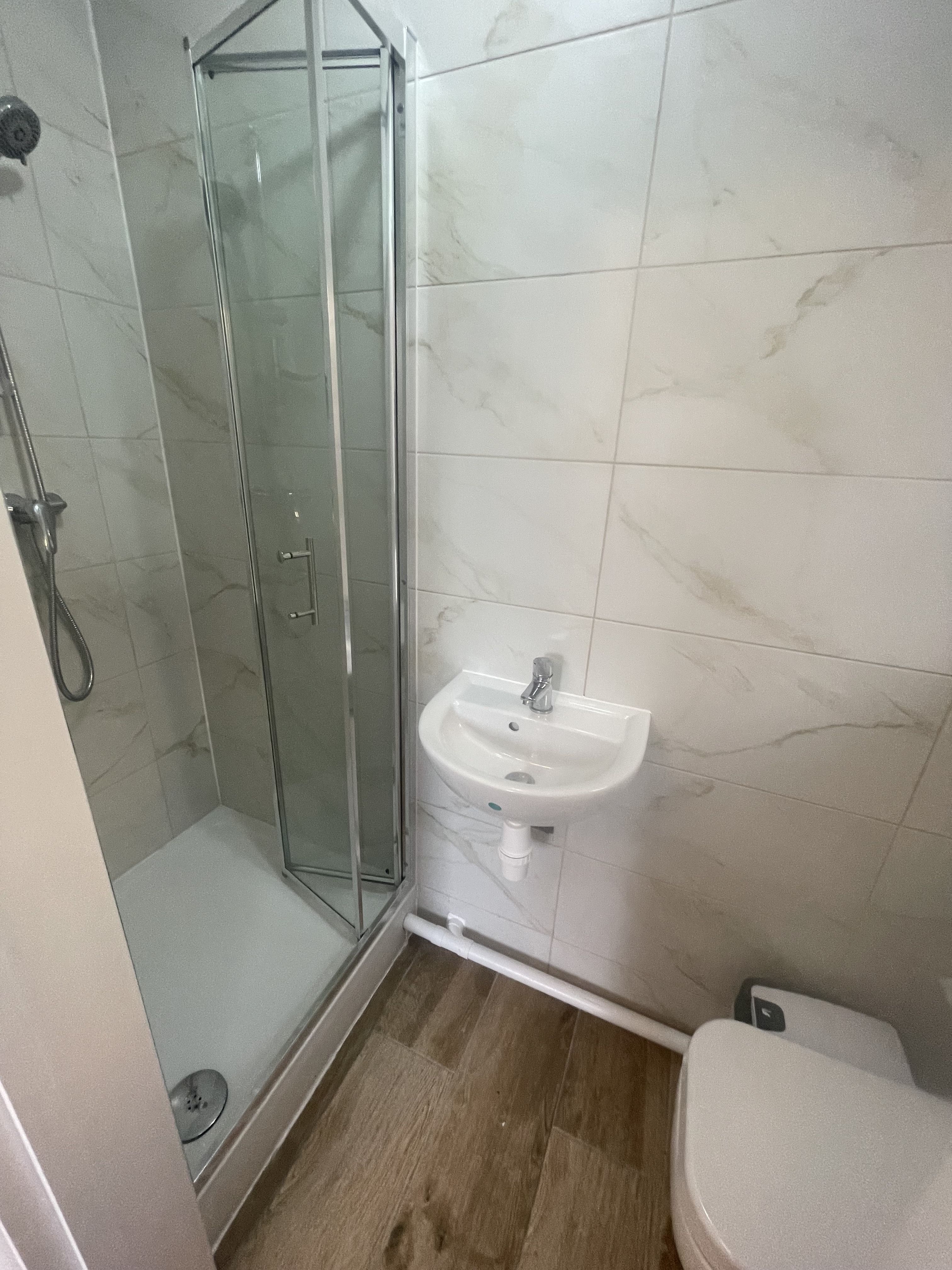 房屋描述: 伦敦东南三区双人间出租,一个人£720/月,俩人£800/月包水电网络,押金两周,King Size床, 房间里有独立的卫浴(如图,不用和别人共用厕所淋浴), 厨房,冰箱,洗衣机,网络,设施齐全,包水电网络,门口有免费停车位。有意请联系07886788969