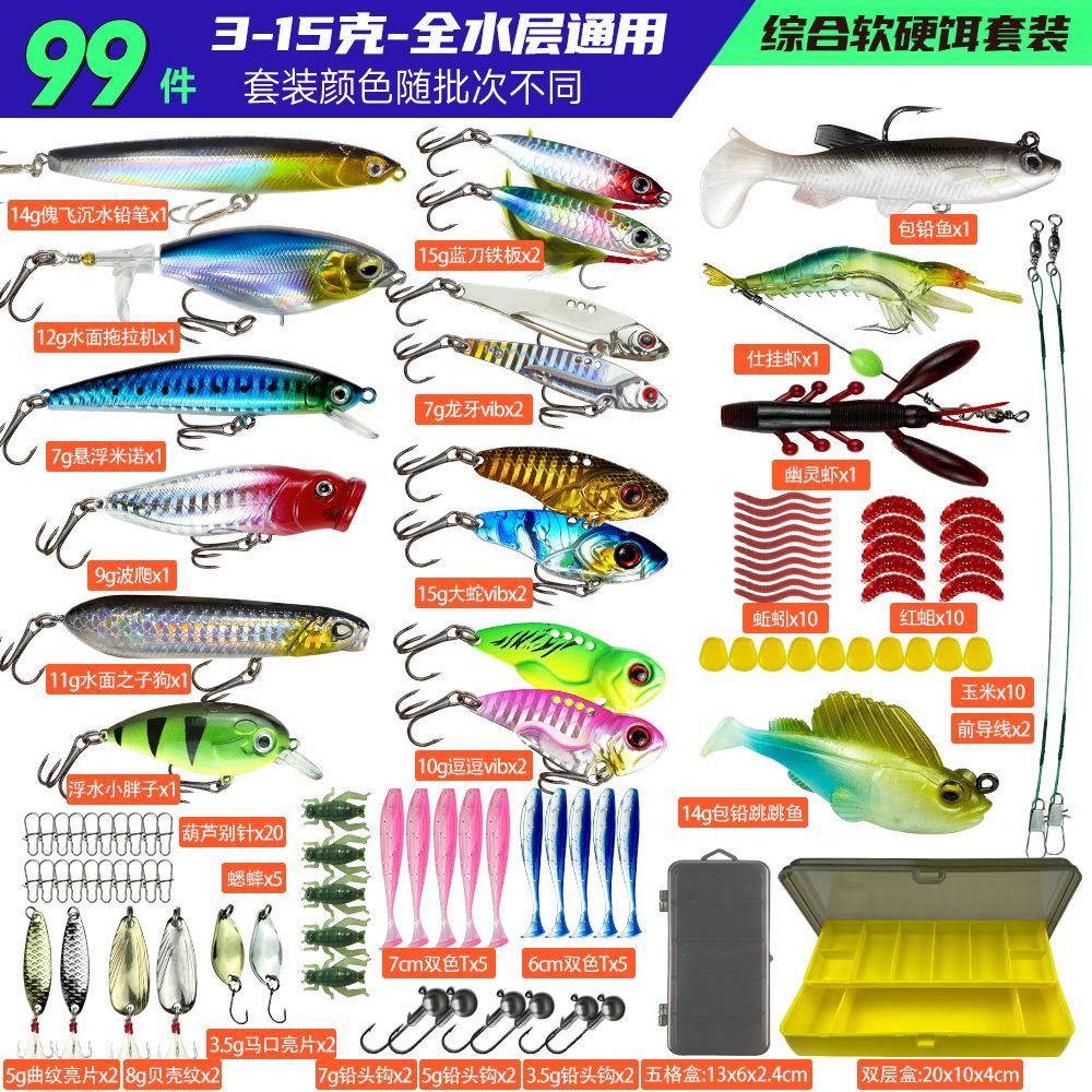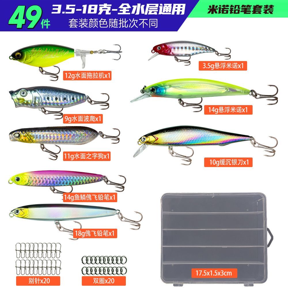 出一套几乎全新的路亚饵套装,米诺、波爬、铁板、VIB、软饵、配件和饵盒都齐全,淡水、近海都能用,新手一套直接开钓。